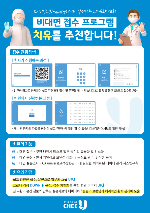 감염 걱정으로 병원 방문을 꺼려하는 이 시기! 저희 비대면 접수 프로그램 '치유, CHEEU'로